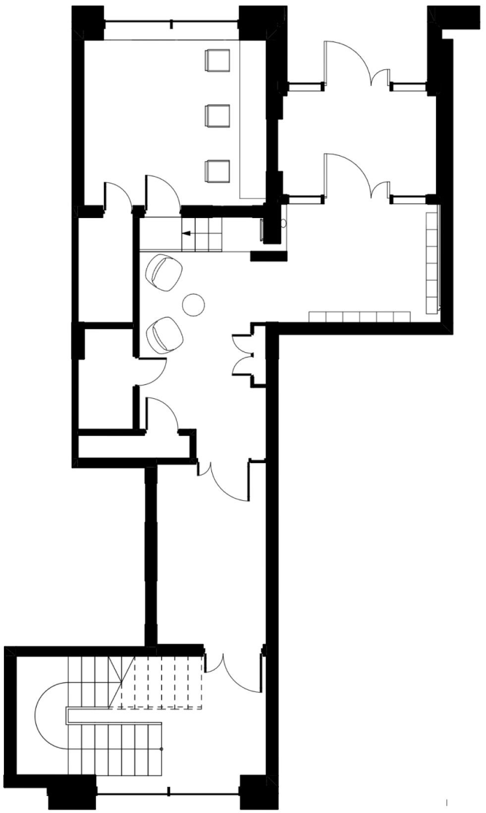 For the first project of the Rasvetay Group in Moscow, AMMG Architects developed architectural solutions, landscaping, and interiors of public spaces. The small hall of the only entrance is quite complex in geometry, and the architects of the studio first worked with the plasticity of the space. The staircase leading to the concierge's room was closed from the entrance with a wall, against which an elegant vase with dried flowers was placed, immediately from the entrance setting an elegant accent. A place for upholstered furniture was found near the far wall – two modern armchairs can comfortably wait for guests or a delivery service.